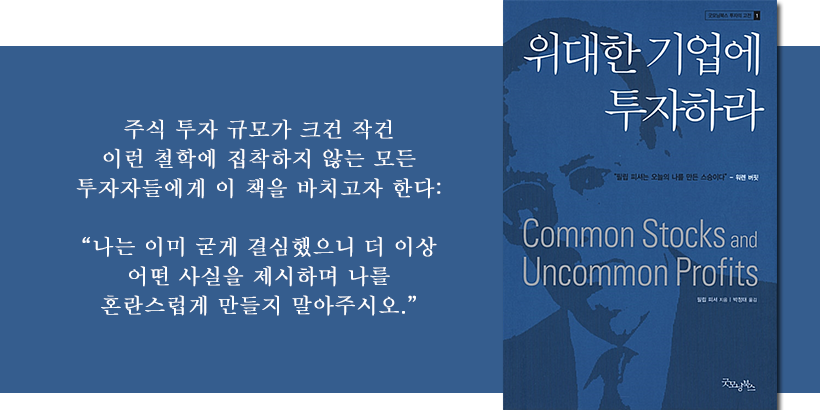 이 책의 진정한 가치는 왜 투자자가 진정으로 위대한 기업에 투자해야 하는지, 그리고 그렇게 하기 위해서는 어떤 내용들을 알아야만 하는지에 대해 역사상 가장 위대한 투자자 중의 한 명인 필립 피셔가 직접 그의 사고와 언어를 통해 알려준다는 점에 있다.